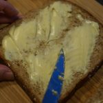 - On passe ensuite aux tranches de pain de mie sur lesquelles on va tartiner du beurre pour que les croques soient bien croustillants après cuisson.